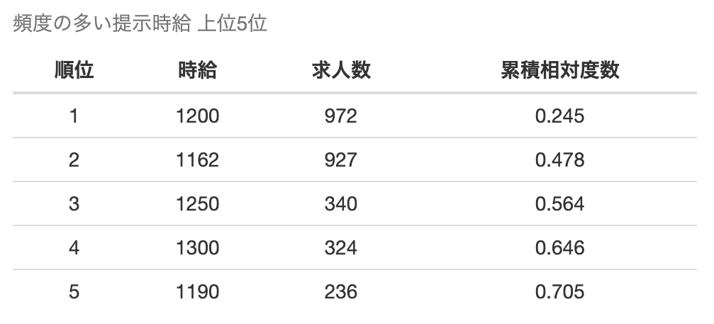 つまり、かなりの数の求人が最低賃金で募集されていることがわかります。