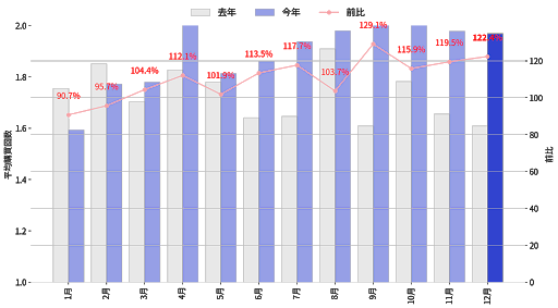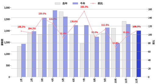 加えて、現状の評価を深めるために前年比も見ておきます。