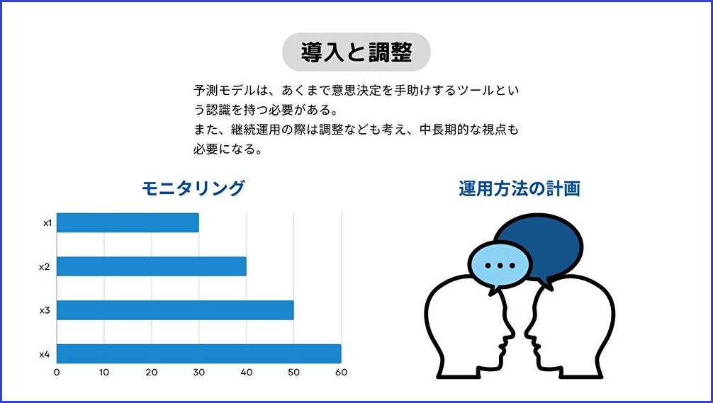 需要予測モデルは、あくまで意思決定を手助けするツールという前提で、「どう使うか」を合わせて設計することが重要です。