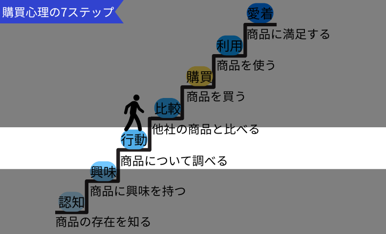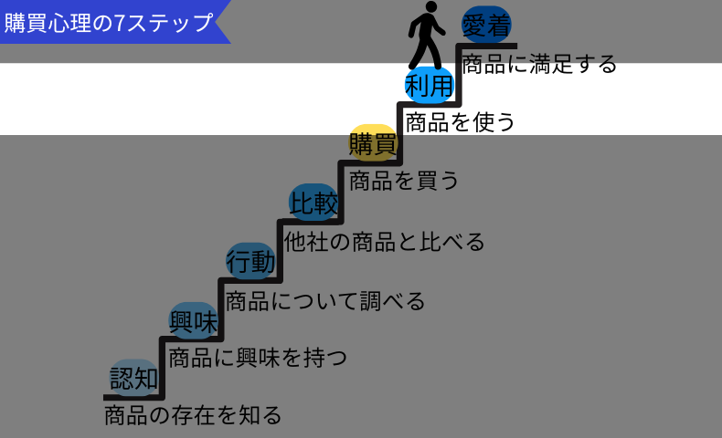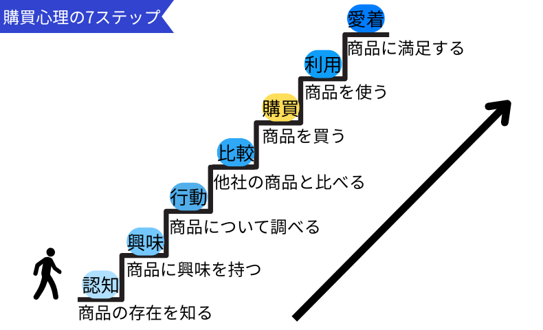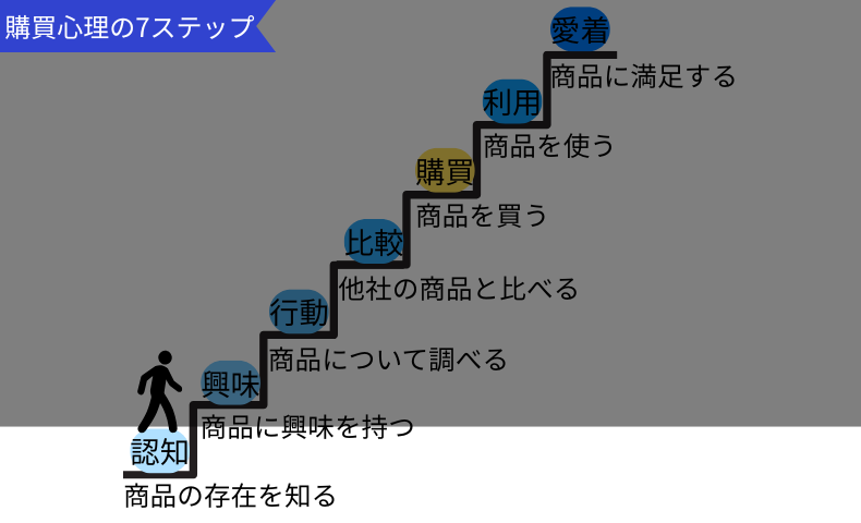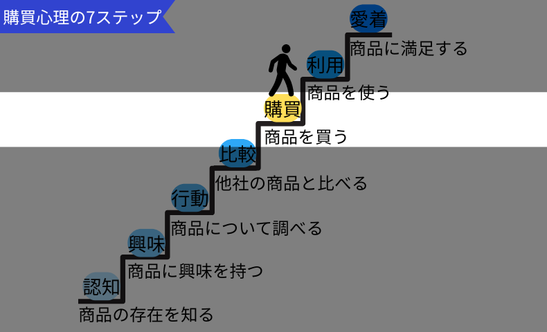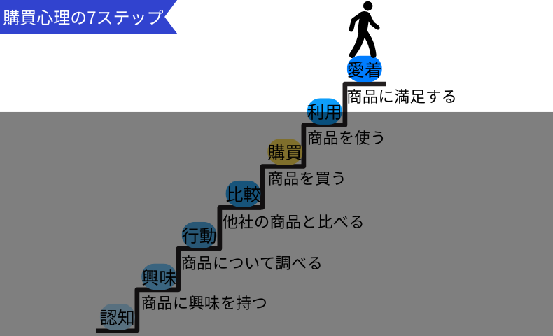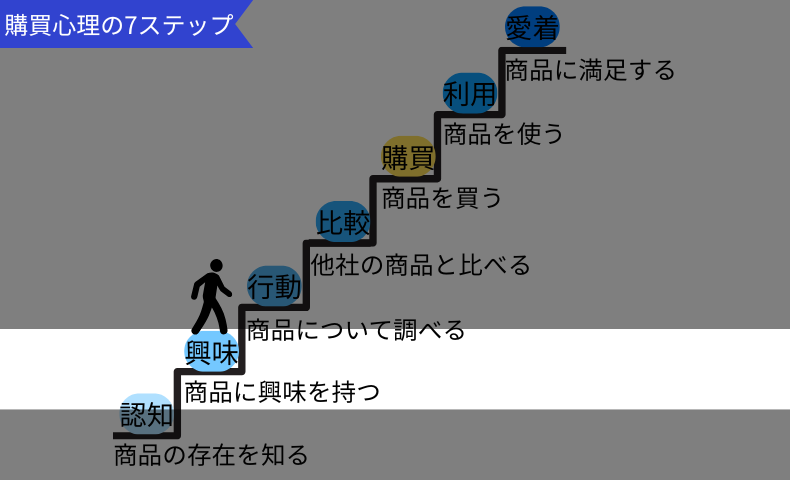 マズローの欲求5段階説の他にも、顧客が商品を買うまでに、7つの段階的な心理の変化があるとされています。