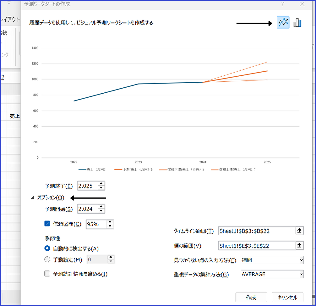 - 必要であれば、オプションから予測開始の日付を変更できます。