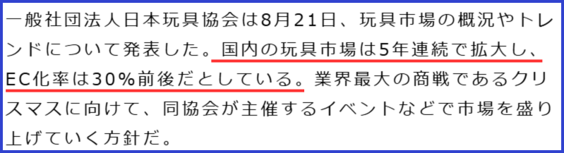特に玩具・アパレル・家電などはその傾向が顕著です。