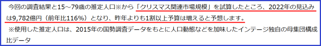 クリスマスは、日本国内でも消費が大きく伸びる主要イベントの1つで、日本のクリスマス関連市場規模は、2022年時点で約9,800億円にのぼると推測されています。
