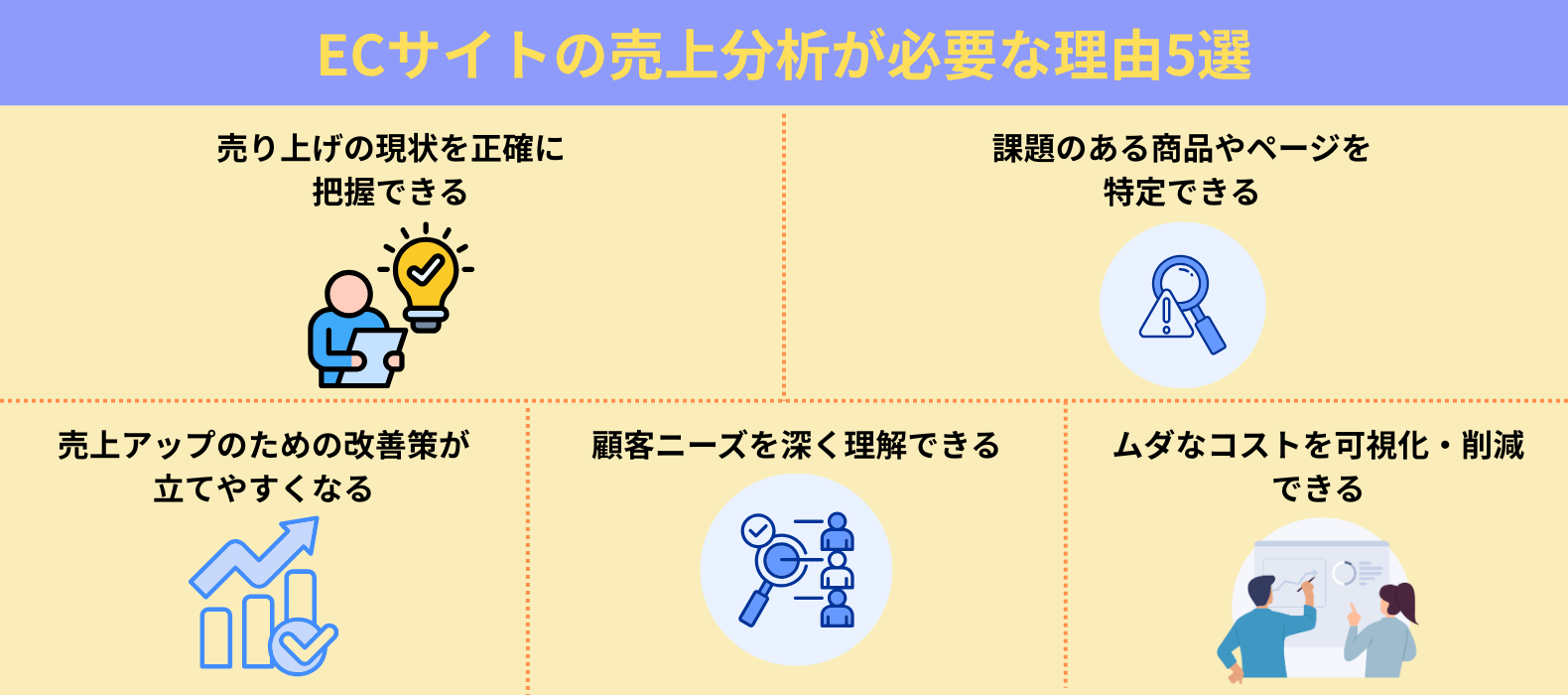 ここでは、ECサイトの売上分析がなぜ必要とされているか、その主な理由を5つお伝えします。