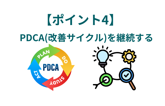 ポイントの4つ目は、PDCA(改善サイクル)を継続することです。
