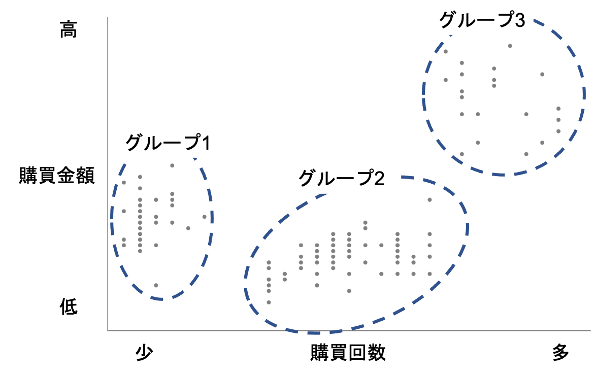 市場分析として顧客の属性(性別、年齢、住所、職業等)をグループ化したり、過去にどんな商品やカテゴリを好んで買っているかを基にグループ化するなど、マーケティングの判断材料として様々なシーンに使えます。
