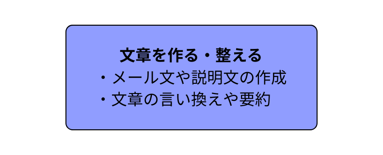 - 何をしてほしいか(例:メール作成、要約、アイデア出し、比較など)