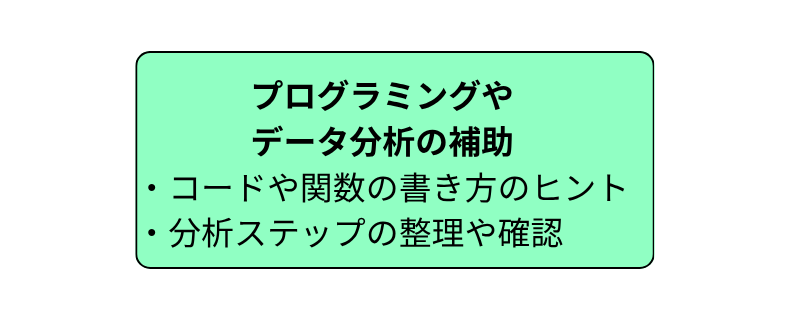 本格的な開発や高度な分析そのものを任せるというより、進め方の整理やつまずいた箇所の確認に使うイメージが現実的です。