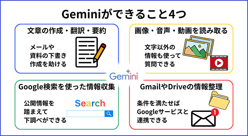 Geminiを仕事に取り入れる前に、どんな作業を任せられるのかを知っておくことが大切です。
