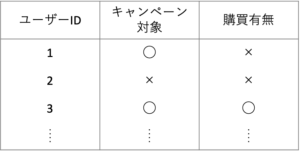 販促のキャンペーンを実施した際の結果で下記のようなデータがあるとします。